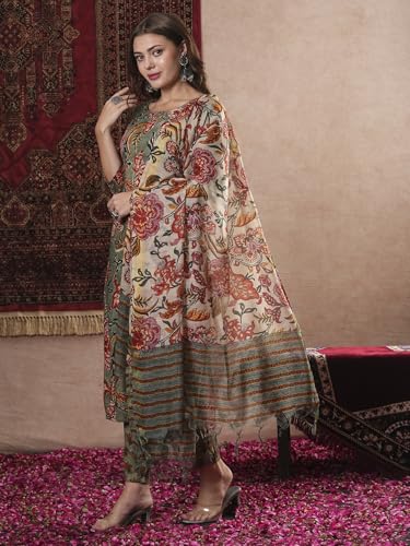 Gosriki Women'S Rayon Blend Printed Straight Kurta With Pant & Dupatta (Fta Green-Vks07-Gs_Xxl_Green_Xx-Large),Green,2,B0DM1S478N