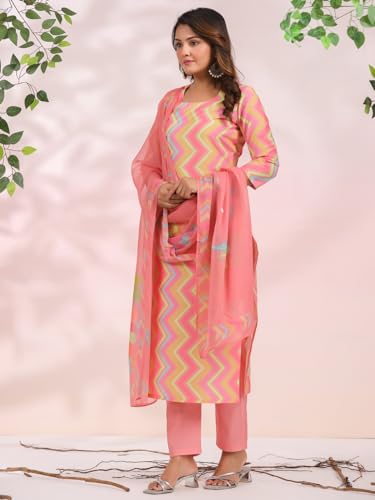 Gosriki Women'S Rayon Blend Printed Straight Kurta With Pant & Dupatta (Zaggu Pink-Nb-Gs_Xl_Pink_X-Large),Pink,,B0CYGT9BVC