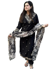 Gosriki Women'S Rayon Blend Straight Embroidered Kurta With Pant & Dupatta (Meena Black-Gs_Xl_Black_X-Large),Black,,B0D73W1TLY