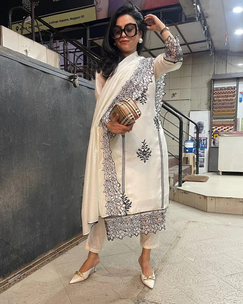 Gosriki Women'S Rayon Blend Straight Embroidered Kurta With Pant & Dupatta (Trp Off-White-Nw-Gs_M_White_Medium),White,,B0CWRYMCXT