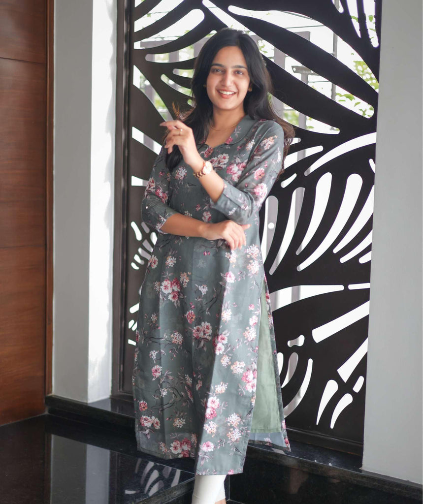 Gosriki Women'S Rayon Blend Straight Printed Kurta (Puzhal Grey-Gs_M_Grey_Medium),Grey,,B0DFY2N2LY