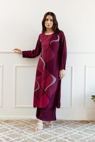 Gosriki Women'S Rayon Blend Straight Printed Kurta With Palazzo (Dakshayini Wine-Vks01-Gs_Xxl_Wine_Xx-Large),Wine,2,B0DKX7ZN4B
