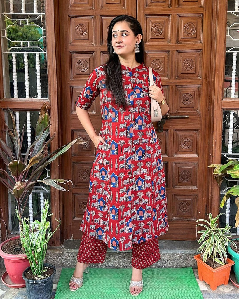 Gosriki Women'S Rayon Blend Straight Printed Kurta With Palazzo (Gpw Red-Gs_Xxl_Red_Xx-Large),Red,2,B0DFCJKFQ6