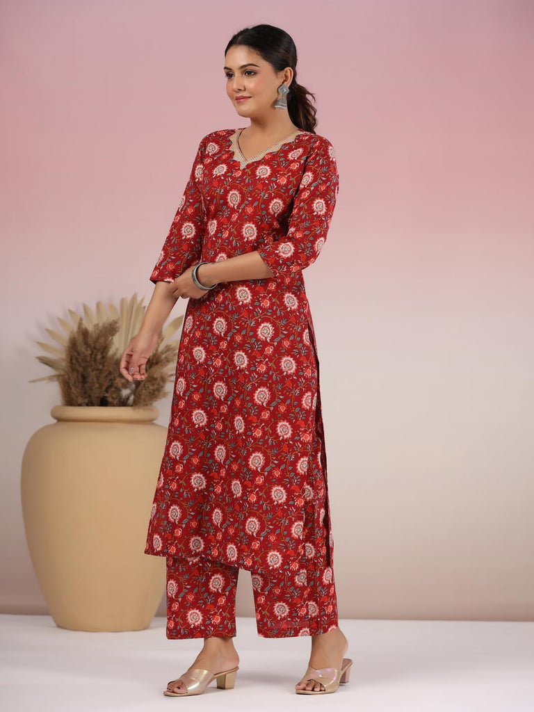 Gosriki Women'S Rayon Blend Straight Printed Kurta With Palazzo (Peton Red-Gs_4Xl_Red_Xxxx-Large)