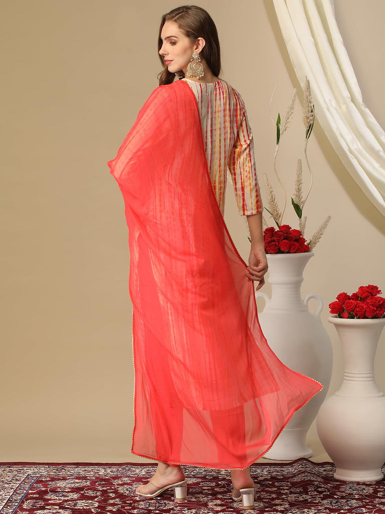 Gosriki Women'S Rayon Blend Straight Printed Kurta With Pant & Dupatta (Tiedye Red-Gs_L_Red_Large),Red,,B0D3BYXYGB
