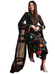 Gosriki Women'S Rayon Blend Straight Printed Kurta With Pant & Dupatta (Twig Black-Gs_Xxl_Black_Xx-Large),Black,2,B0DC6KRJN9