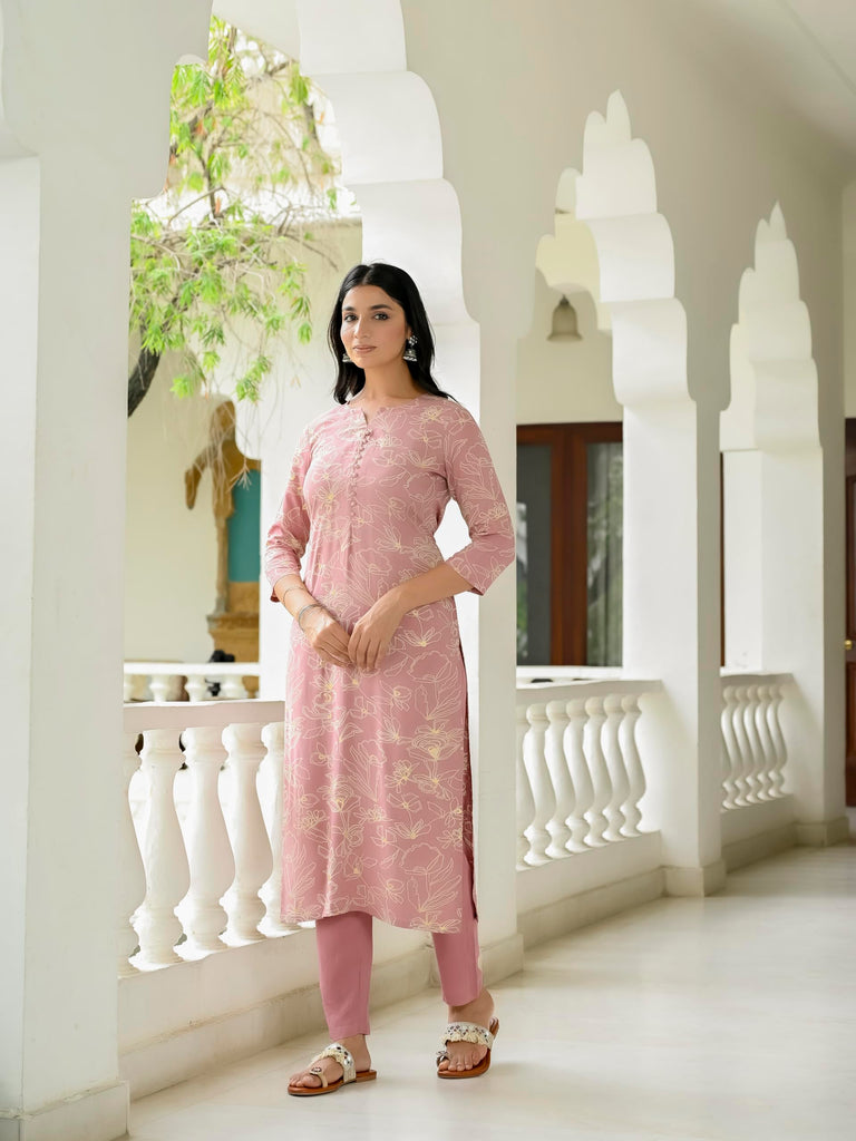 Gosriki Women'S Rayon Blend Straight Printed Kurta With Pant (Ghasi Pink-Vks01-Gs_S_Pink_Small),Pink,,B0DBLZ6W5V