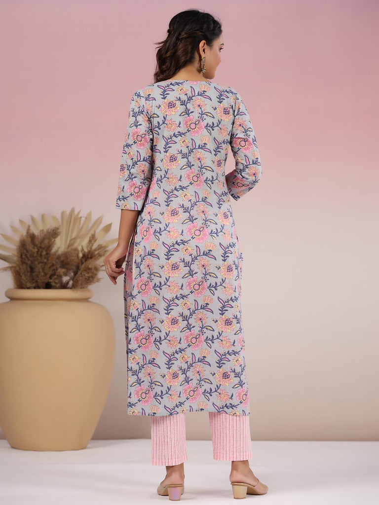 Gosriki Women'S Rayon Blend Straight Printed Kurta With Pant (Kripani Grey-Gs_Xl_Grey_X-Large)