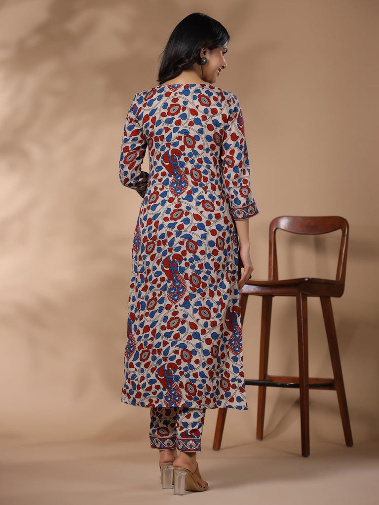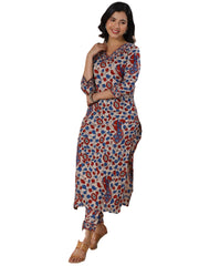 Gosriki Women'S Rayon Blend Straight Printed Kurta With Pant (Nakari Cream-Nws-Gs_L_Cream_Large)