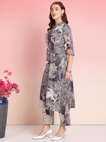 Gosriki Women'S Rayon Blend Straight Printed Kurta With Pant (Tomsk Purple-Vks01-Gs_S_Purple_Small),Purple,,B0DRNMYB6C