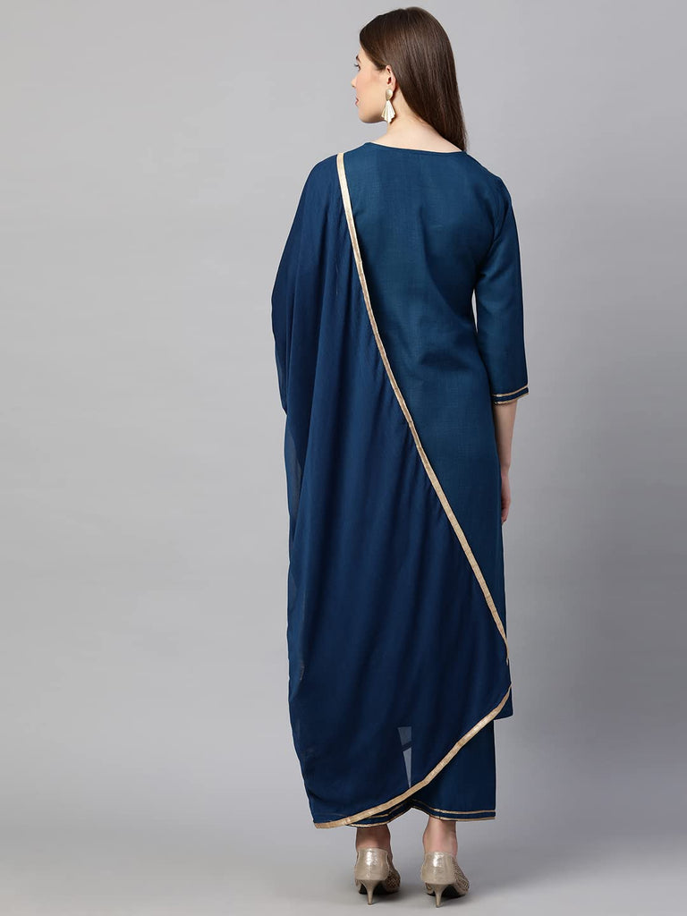 Gosriki Women'S Ruby Cotton Solid Straight Kurti With Palazzos & Dupatta Set (Label Cerosin_Xl-Go_Blue_X-Large),Blue,,B09Q129M9S