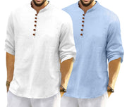 Royalscout Men'S Cotton Polyester Blend Solid Regular Fit Full Sleeve Short Kurta | Ethnic, Lightweight Summer Kurta For Daily & Occasion Use White-Sky 3Xl