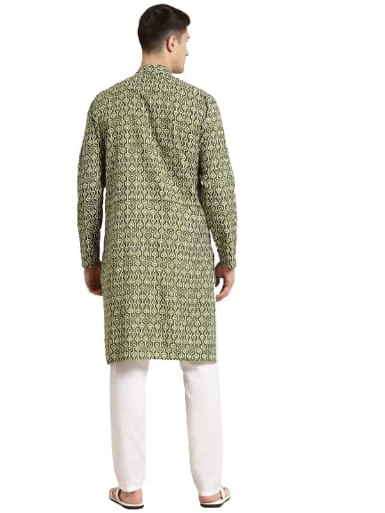 Sojanya (Since 1958 Men'S Cotton Mehendi & White Print Kurta & White Churidar Pyjama Set