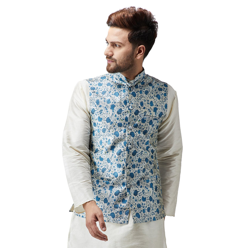 Sojanya (Since 1958, Men'S Silk Blend Blue Printed Only Nehru Jacket, Size: M(Sjr-Nehrujacket-Print-502-38)