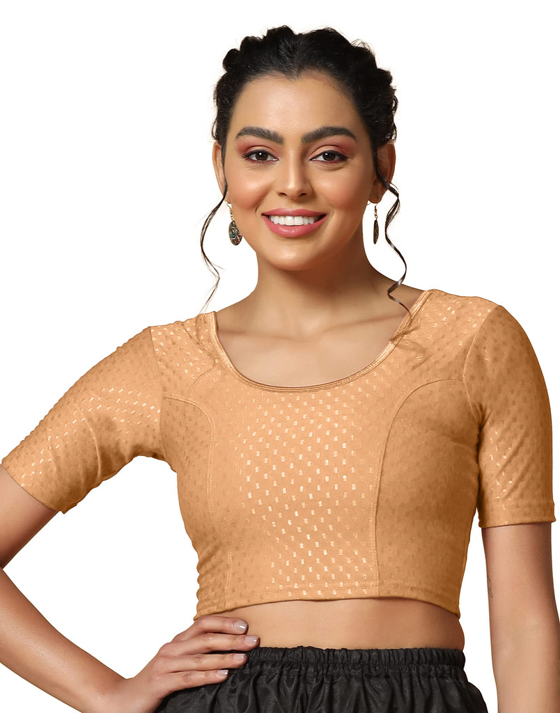Toplot Cotton Blend Lycra Stretchable Round Neck Blouses For Women Readymade (Blouse-5058-Cream-32),Beige,32,B0BX5TLY3Z