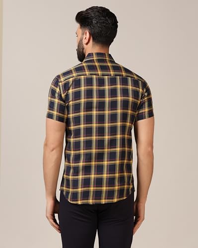 Toplot Men'S Regular Fit Casual Shirt Checks Design With Spread Collar & Half Sleeves (Chex-Shirt-5177-Yellow-L),Yellow,,B0CYGTPV8F