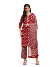 Toplot Women'S Printed Straight Kurta With Pant & Dupatta|Kurta Pant Set With Dupatta (Printed-Kurta-Pant-5198-Red-L),Red,,B0DCP1Z556