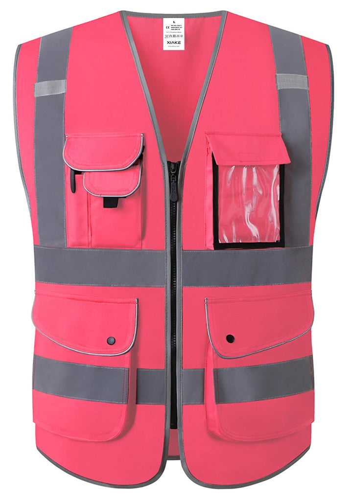 The XIAKE safety vest is available in a bright pink color, which enhances visibility for safety purposes.
