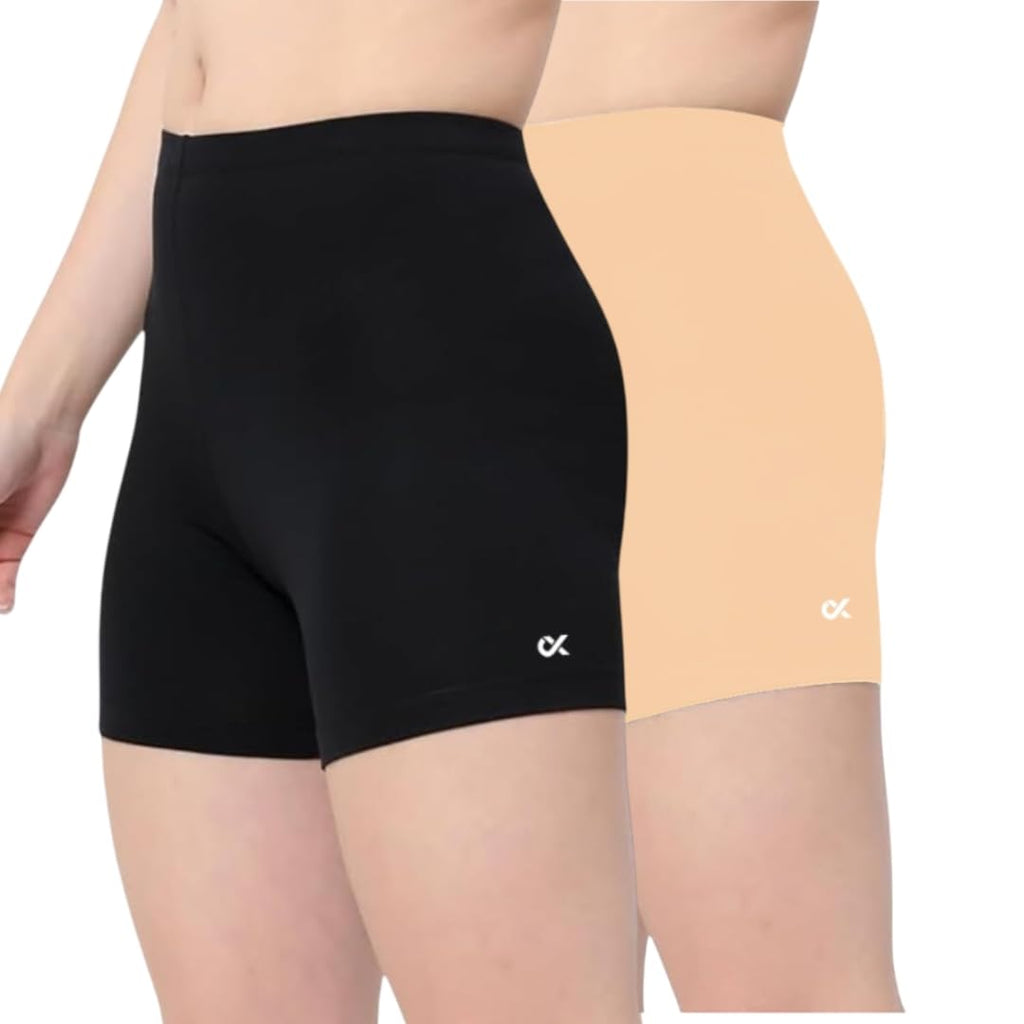 Xjarvis Lucia Shorts For Women Stretchable Yoga Shorts Soft Squat-Proof & Breathable Cycling Running For Skin Fit Tights & Gym Short Pack Of 2 (Black Skin Xl),Pack of 2 - Black/Sk,,B0DZHG4ZTV