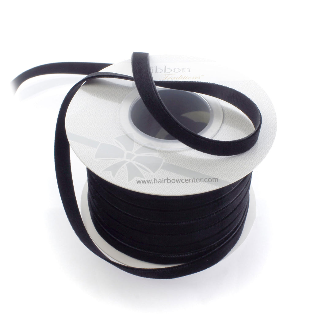 3/8 Velvet Ribbon - Narrow Single-Sided Craft Trim For Hair Bows, Sewing & Gift Wrapping - (Black, 5 Yards)