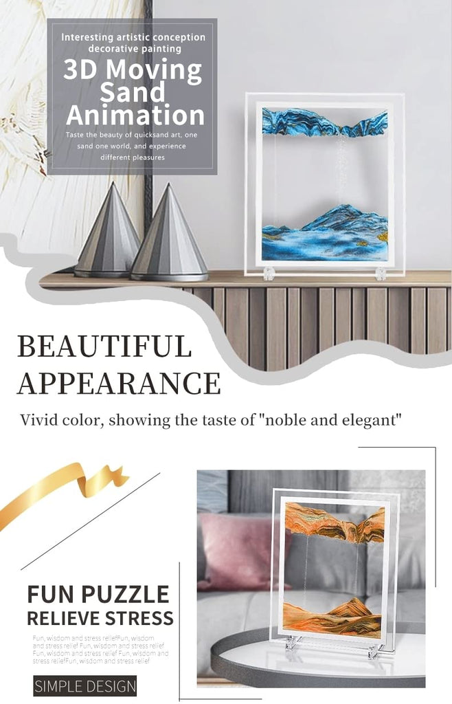 3D Deep Sea Sandscapes Moving Sand Art Picture Liquid Motion Sand Art for Adult Kid Desktop Art Toys for Home Decor and Office(B