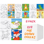 Package Quantity: 8 different styles of painting canvas and 8 sample small cards to meet your painting needs, perfectly suitable for children, students, art beginners. Suitable Size: Pre drawn outline canvas measure approximately 20 x 20 cm/8 x 8 inches, with clear textured patterns printed on the canvas, allowing children with no painting experience to use their imagination for DIY. Pattern Design: There are 8 different animal patterns on the pre drawn canvas, including fox, lamb, tiger, giraffe, rabbit, elephant, dinosaur and cat, with cute designs that can add to the fun when painting. Easy to Use: Childrens pre-painted canvases is easy to color and stapled to the frame will not easily loosen and curl, which can provide a better painting experience. Great Gift: Canvas for painting for kids can be used as gifts for birthdays, Christmas and holidays and help children improve color recognition and creativity. Suitable for birthday parties, classrooms, and childrens activities.