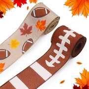 Abtols 2 Roll 10 Yards Brown Football Ribbons 2.5, Football Wired Edge Burlap Ribbon Fall Leaves Ribbon For Farmhouse Decor Gift
