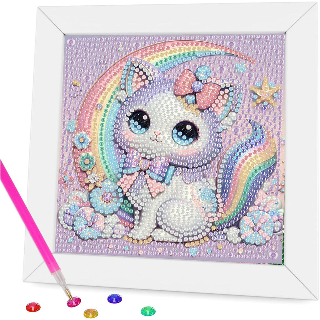 Aestalrcus Cat Diamond Art Kits For Kids With Frame, Cat Diamond Art Painting For Kids Ages 4-12, Easy Crystal Gem Art Kits For