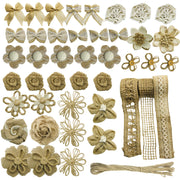 Natural Burlap Flowers Set can be used to make art crafts, handmade flowers, home decor, wrap Christmas gift etc. Specification: Material: natural jute and white lace Lace burlap ribbon width: 3.5cm Lace burlap ribbon length: 2m/ 2.2 yard Jute rope roll size: 2mm x 10m(W x L),total 20m long Package includes: 40 x Natural burlap flowers 3 x Lace burlap ribbon 2 x Twine 1 x Glue point Note: 1.The product is made of natural jute, it will send out Jute smell, please ventilation before use and keep away from fire! 2.There is a risk of entanglement.Keep away from children. 3.Manual measurement, please allow slight dimensional error.