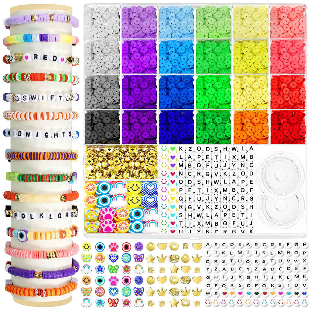 Artdot 5342 Pcs Clay Beads For Friendship Bracelets Making Kit, 24 Rainbow Colors Jewelry Making Supplies Heishi Beads With Elas
