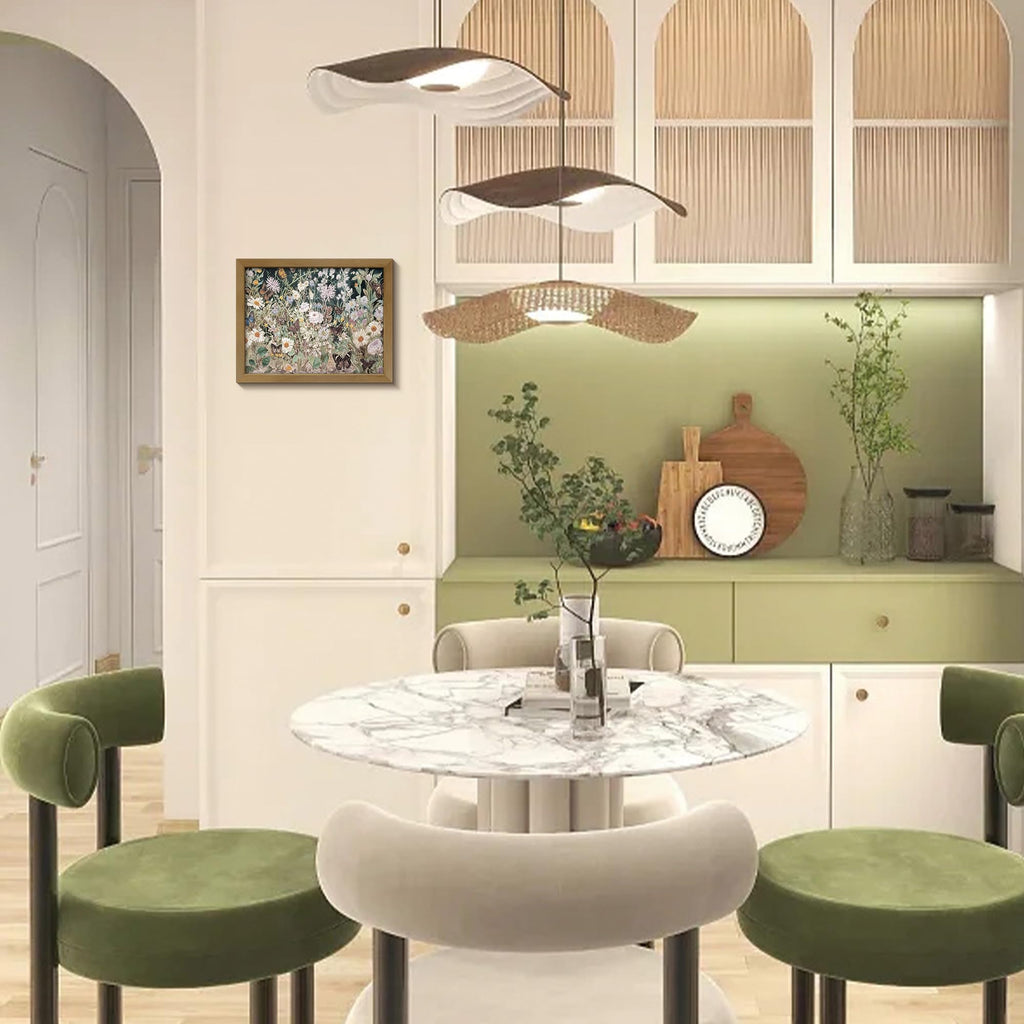 BANMU Wildflowers Butterfly Garden Painting - Spring Dark Botanical Wall Art, Jewel Toned Floral Painting for Bedroom decor, liv