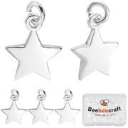 Beebeecraft Crafted Only For You Beebeecraft 1 Box 20Pcs 925 Sterling Silver Plated Star Charms Metal Pentagram Five-Pointed Dangle Pendants Mini Stars Charms with Jump Rings for Jewelry Making Necklaces Earrings Gifts DIY Crafts Brand: Beebeecraft Material: 925 Sterling Silver Plated Brass Feature: 20Pcs Star Charms: There are 20pcs star shape charms, ample quantity for your DIY jewelry needs, and you can also share with family and friends 925 Sterling Silver Plated Brass Charms: These star shape charms made of 925 sterling silver plated brass, shiny and durable, good workmanship, add a touch of elegance to your outfit Star Charms: Attractive charms are adopt electroplating process, shiny silver finish can bring elegant and chic looking, fine workmanship, smooth surface, will make you more eye catching Size: Star charms: 0.45 x 0.39 inch(11.5 x 10mm), jump ring: 0.14 inch(3.5mm) in diameter. Comes with 1pc plastic box to storage Multiple Uses: Pentagram charms can be used for a variety of DIY decoration, suitable for earrings, necklaces, bracelets and other jewelry, used to make key chains, sweater chains, anklets, mobile phone decoration accessories, also can be great gifts for your family and friends Kindly Note: To avoid fading, we suggest you take it off when taking a bath or swimming.