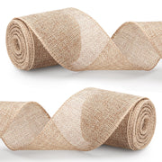 Burlap Wired Edge Ribbon, Natural Jute Ribbon for Gift Wrapping, Trees Decorations, Big Bow, Wreath, Bouquets, Crafts Making, 2 Rolls x 6 Yards (2.5 Wide)