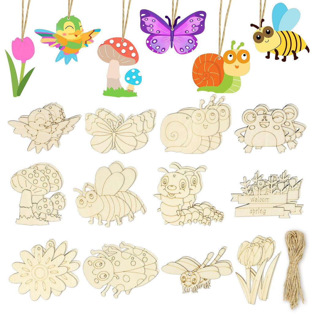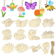 Catephe Unfinished Wood Crafts, 36 Pcs Wooden Crafts To Paint, 12 Styles Blank Wooden Spring Ornaments To Paint, Butterfly Drago