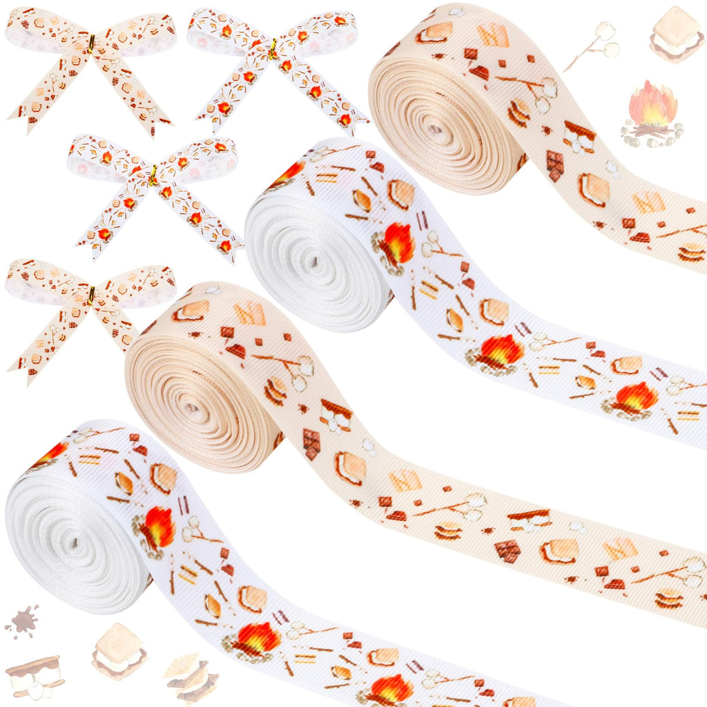 Cheerupp 4 Rolls Smore Theme Ribbons, 20 Yards Craft Ribbons For Wreath Hair Bow Wrapping Gifts Packing, Bonfire Camping Grosgr