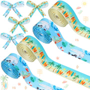 Cheerupp 4 Rolls Surfing Theme Ribbons, 20 Yards Craft Ribbons For Wreath Hair Bow Wrapping Gifts Packing, Summer Beach Grosgrai
