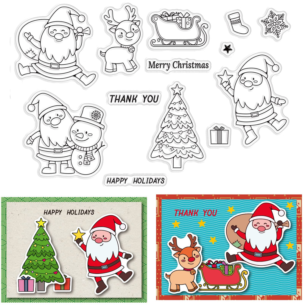Craspire Merry Christmas Clear Stamp Santa Claus Snowman Reindeer Christmas Tree Transparent Silicone Stamps For Card Making Diy
