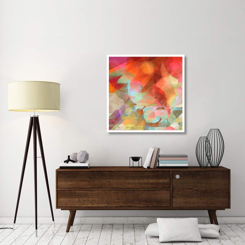 The Global Gallery Dawn Paper Art measures 38 inches by 38 inches, including the frame.