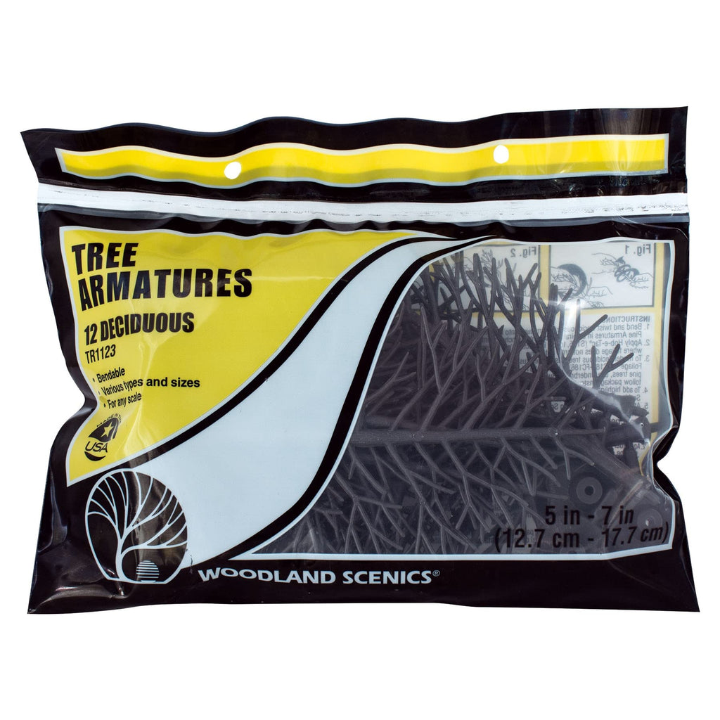 Deciduous Tree Armatures are flexible structures made from plastic that can be bent and twisted to create realistic tree shapes for model railroading and scenery applications.