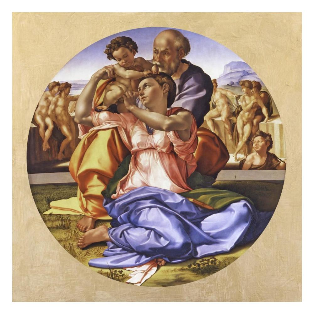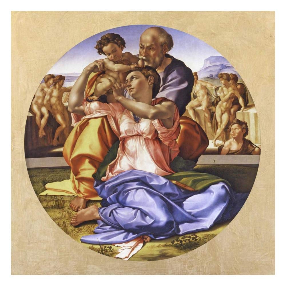 The Global Gallery Doni Tondo features artistic themes typical of paper art but specific themes are not detailed.