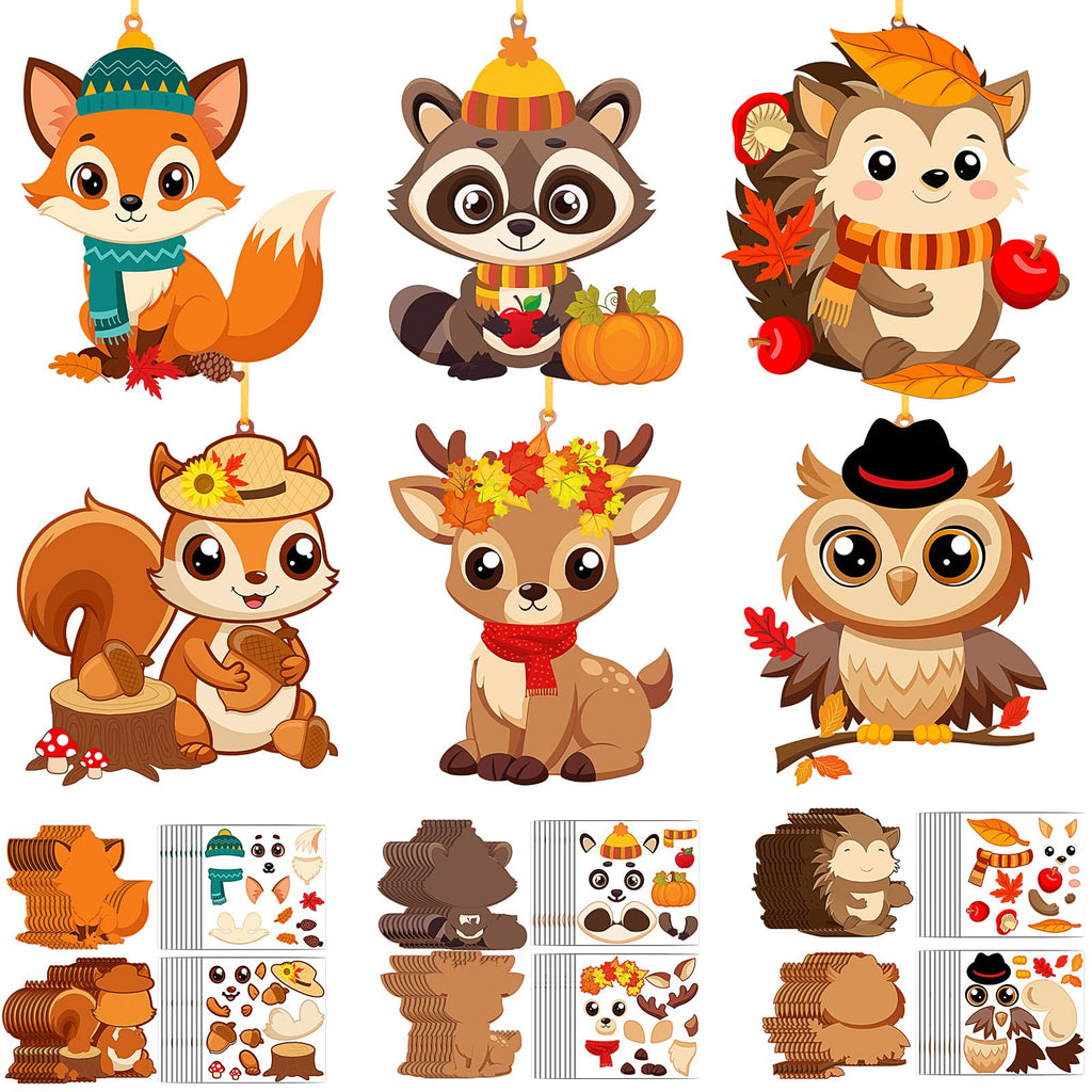 Epakh 60 Sets Fall Crafts For Kids Bulk Fall Arts And Crafts For Kids Make Your Own Autumn Animal Stickers Diy Autumn Hanging Or