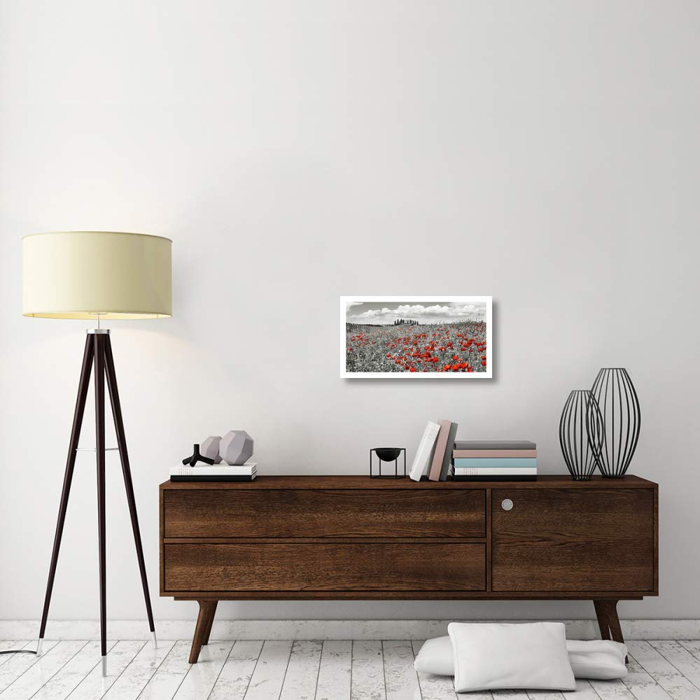 The Global Gallery print is a paper art photograph depicting a farm house with cypresses and poppies in Tuscany, Italy.
