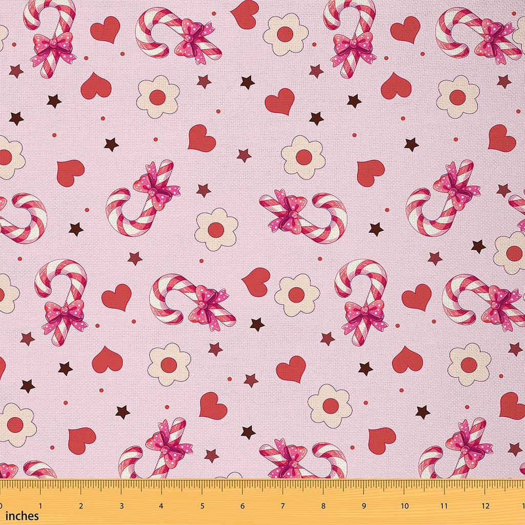 Feelyou Merry Christmas Fabric By The Yard 3 Yard Kids Bow Upholstery Fabric For Chairs For Boys Girls Teens Holiday Gift Heart