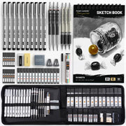 Four Candies 52Pcs Art Supplies Sketching & Drawing Kit With 10 Micron Fineliner Pens, 6 Drafting Mechanical Pencils,3-Color Ske