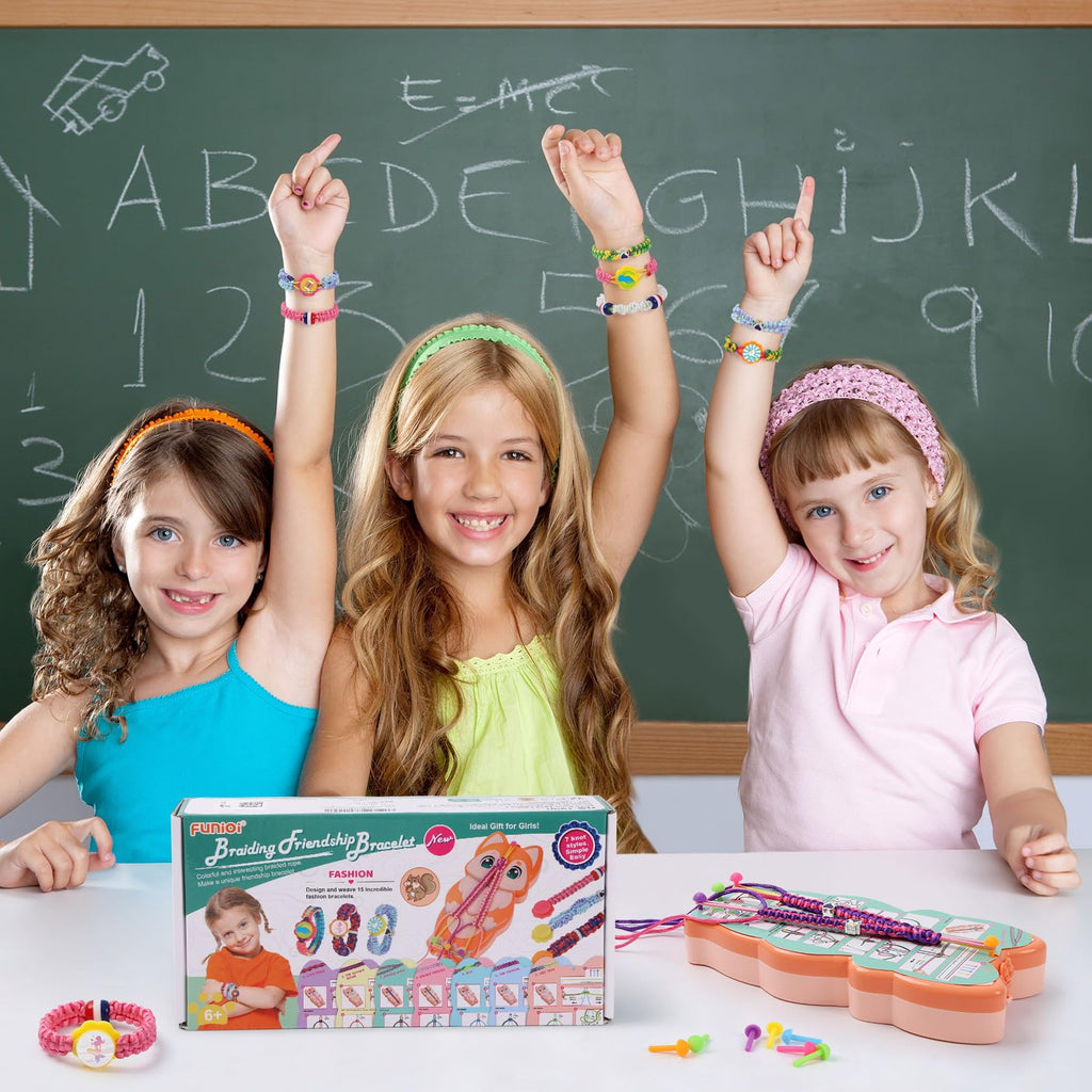 Introducing our Bracelet Making Kit, the perfect gift for girls aged 8 and above. This kit includes a vibrant assortment of colors, various patterns, and adorable beads, providing endless possibilities for unique designs. All accessories are neatly stored inside the maker for easy organization. Packaged in an elegant gift box, this kit is ideal for fostering creativity and fine motor skills. Whether crafting solo or with friends, kids will enjoy hours of fun creating beautiful bracelets. Surprise your daughter or granddaughter with this exciting and creative gift that encourages self-expression and imaginative play.