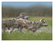 Gray Wolf Pair Running Through Water, North America-Paper Art-34,,X26,,