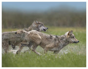 Gray Wolf Pair Running Through Water, North America-Paper Art-50,,X38,,