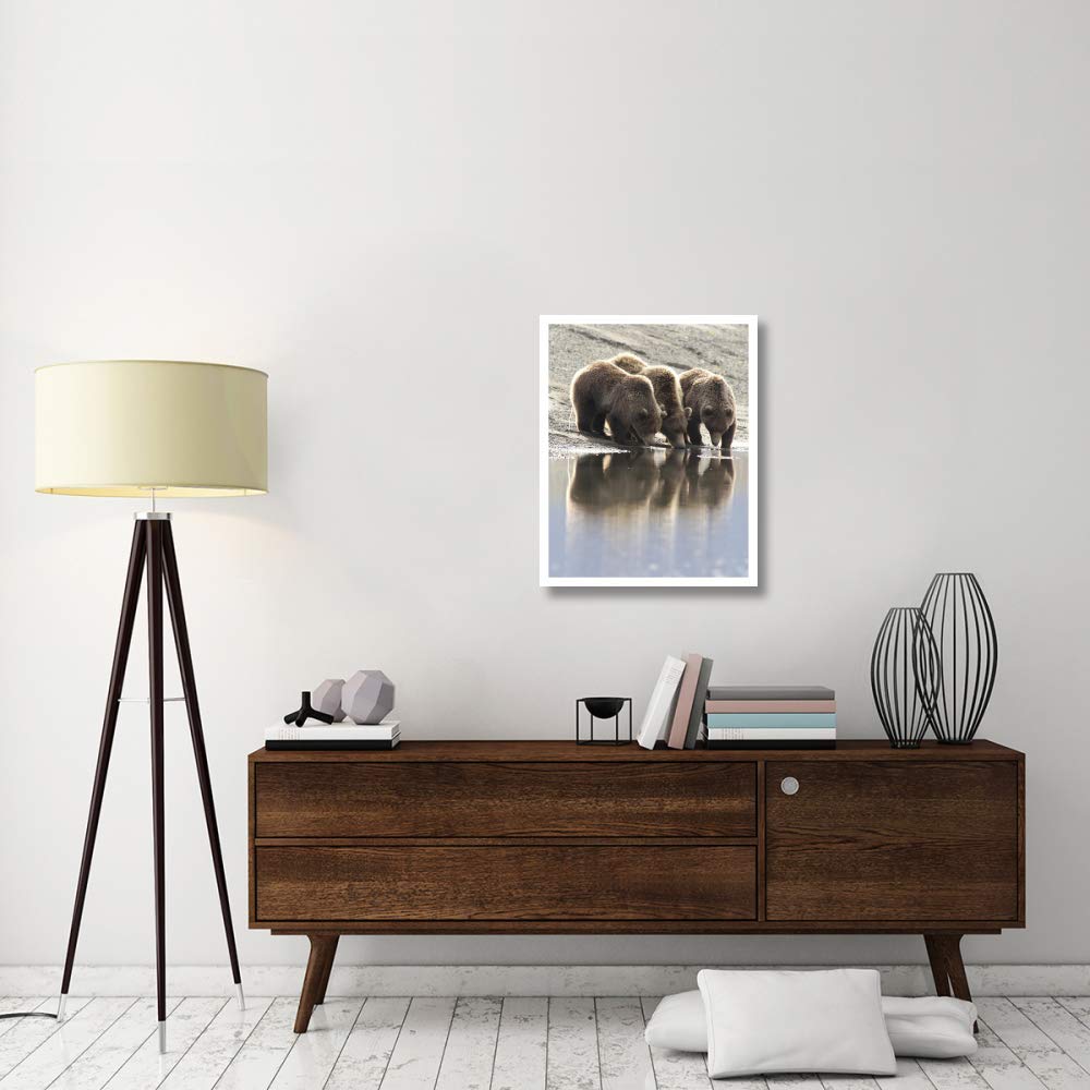 Grizzly Bear Mother And Yearling Cubs Drinking, Katmai National Park, Alaska-Paper Art-24,,X30,,