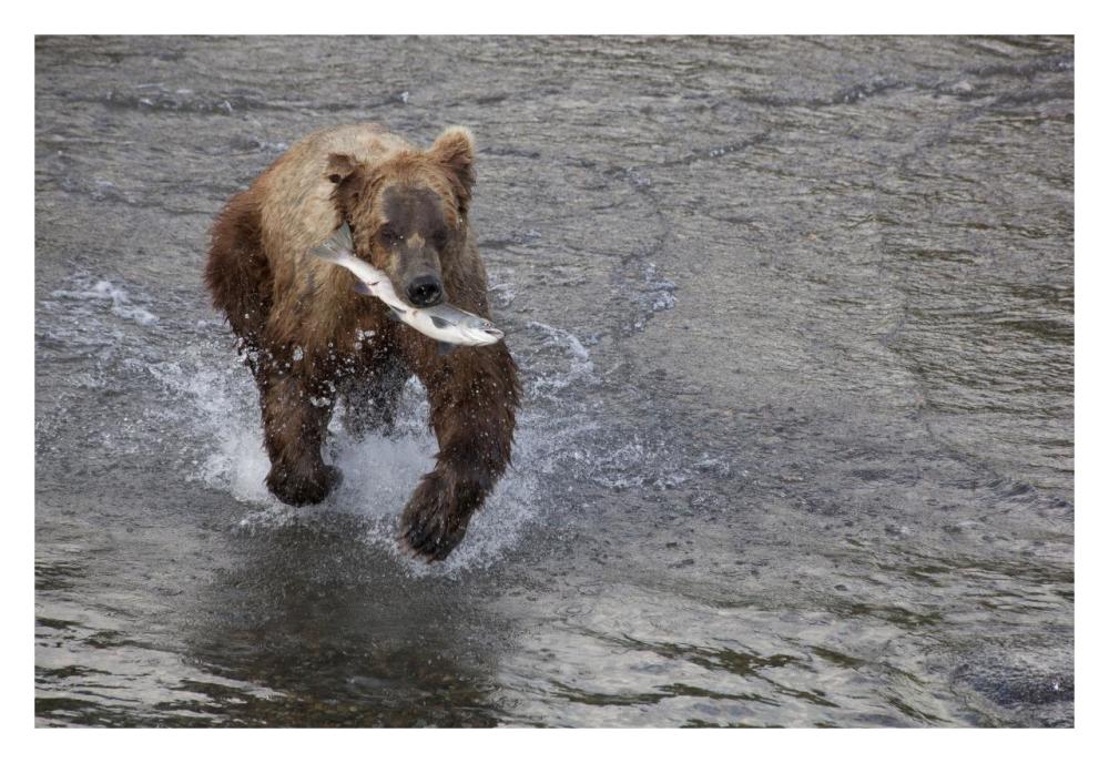 The image features a Grizzly Bear along Brooks River in Katmai National Park, Alaska.