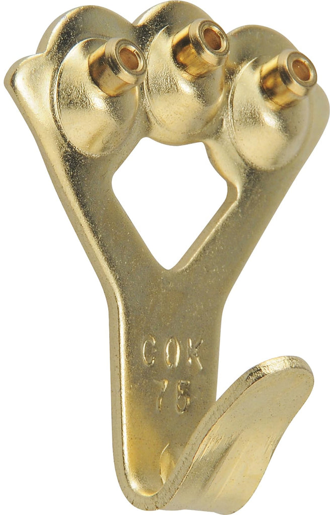The OOK picture hangers feature a brass finish and are accompanied by blued steel nails.